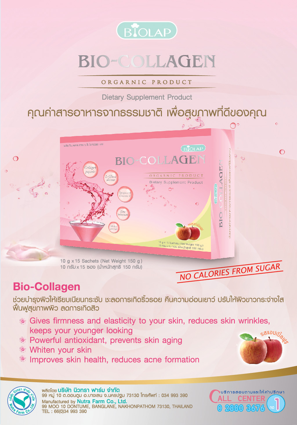 ผลิตภัณฑ์เสริมอาหาร เพื่อผิวขาว เรียบเนียนกระชับ รสแอปเปิ้ลฟูจิ